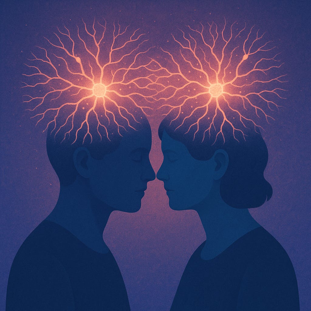 A couple having a mind-meld. Made with ChatGPT.