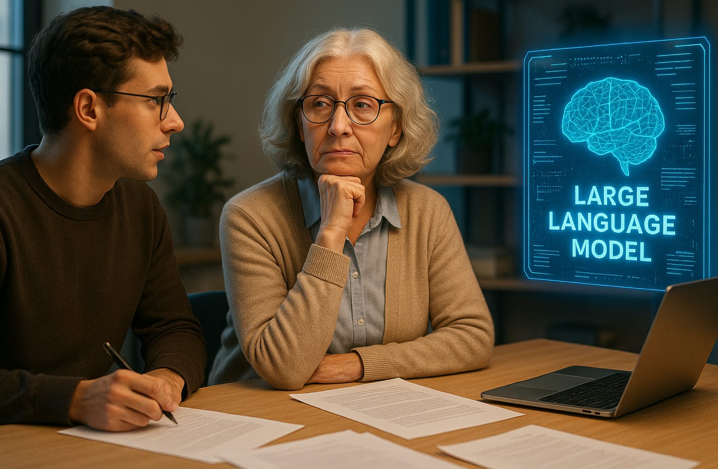 A senior author deciding whether to task an LLM or a postdoc with drafting a paper. Image created with Perplexity.